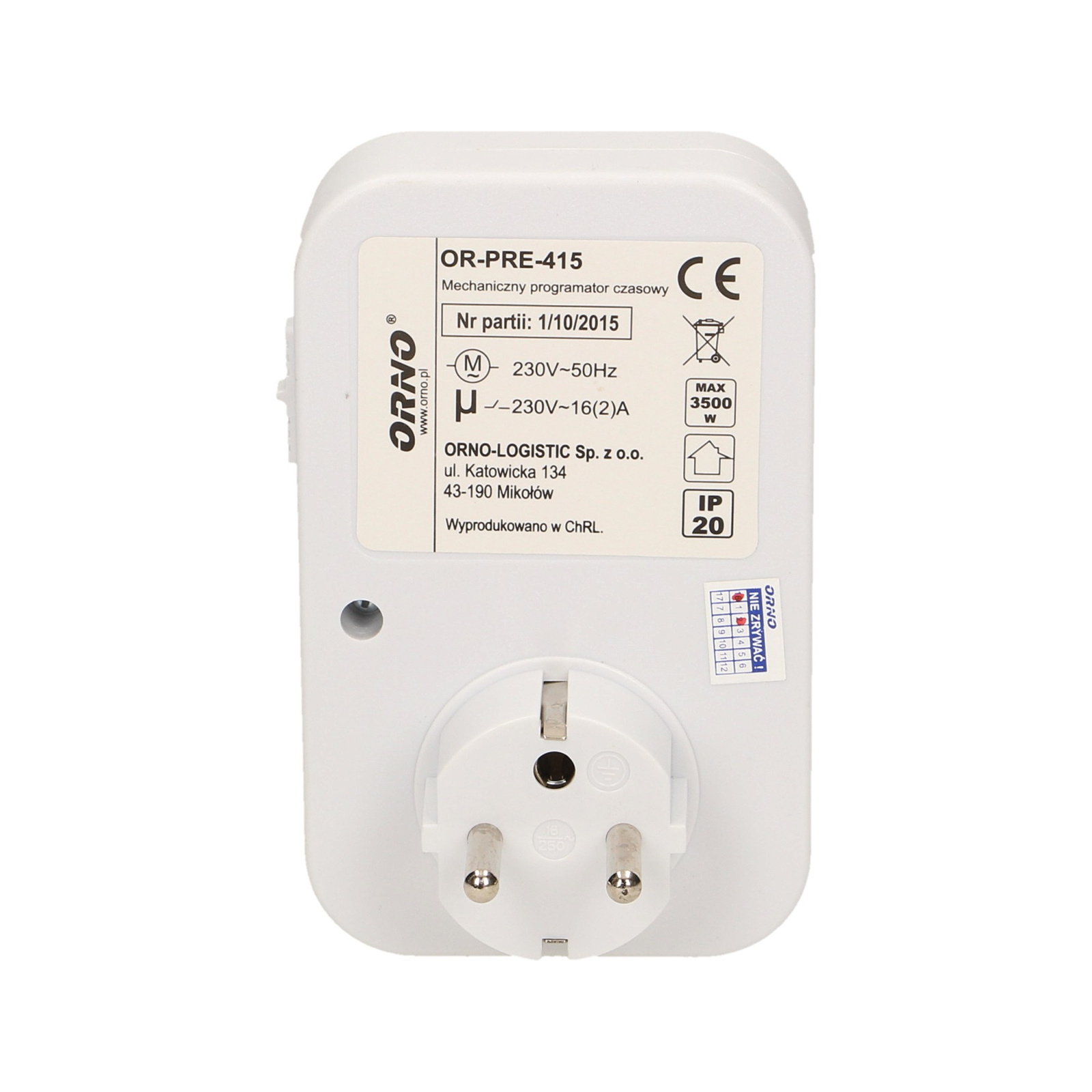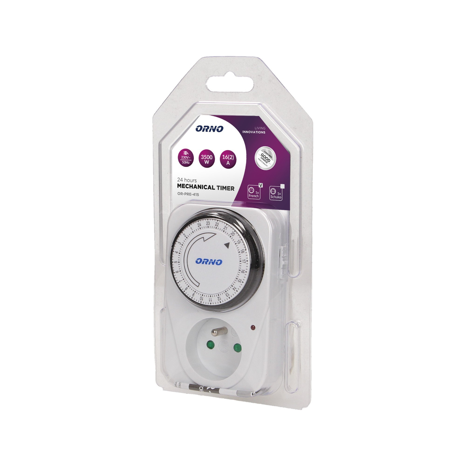 - Programator czasowy mechanicznyProgramator do ustawiania czasu włączania i wyłączania urządzeń elektrycznych w trybie dobowym. Minimalny czas włączenia/wyłączenia wynosi 15min.