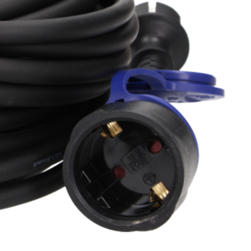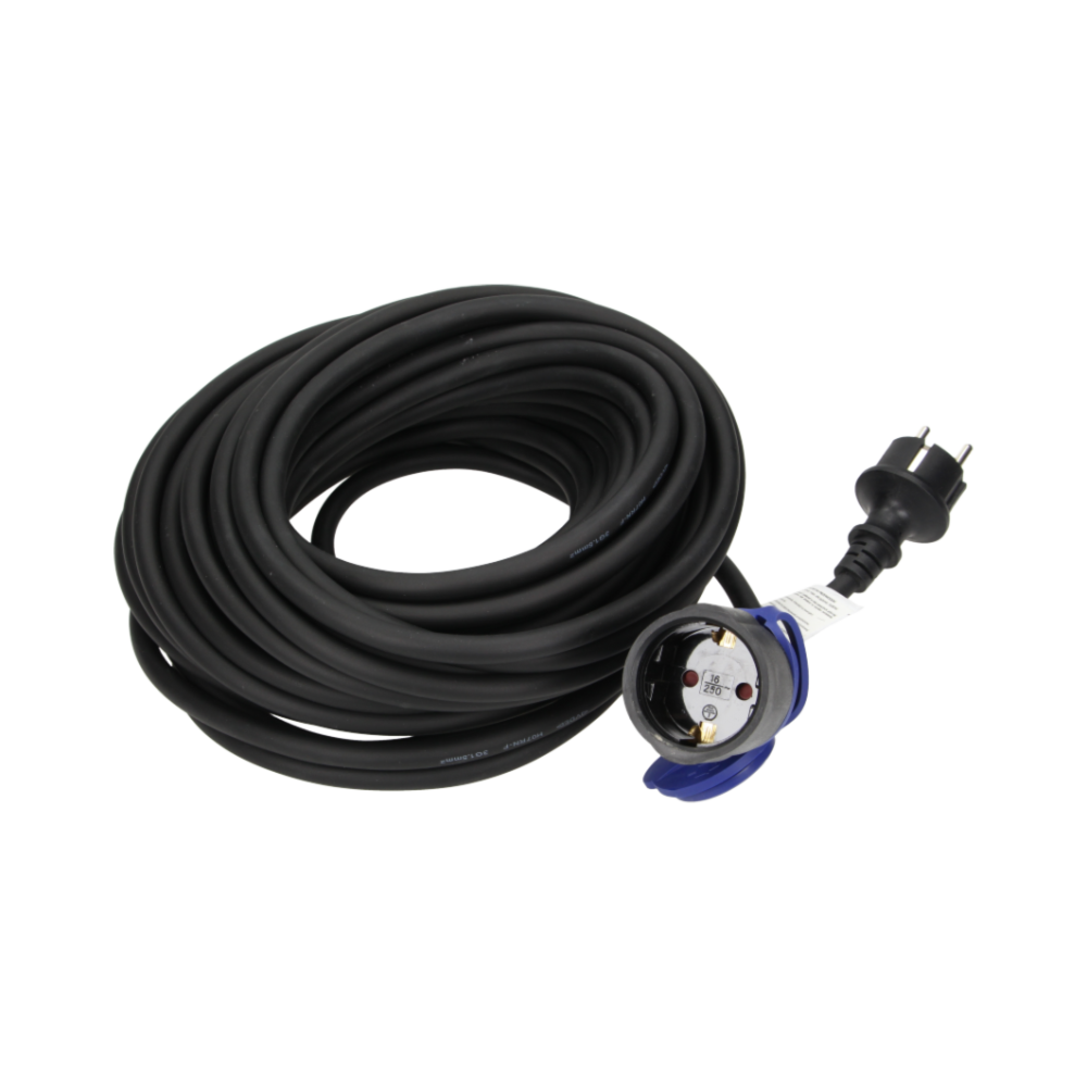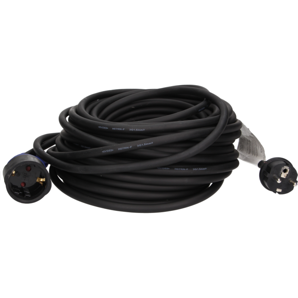 Przedłużacz warsztatowy bryzgoszczelny IP44, 1x2P+Z (schuko) 30m, kabel gumowy olejoodporny H07RN-F 3x1,5mm², 230VAC/16A
