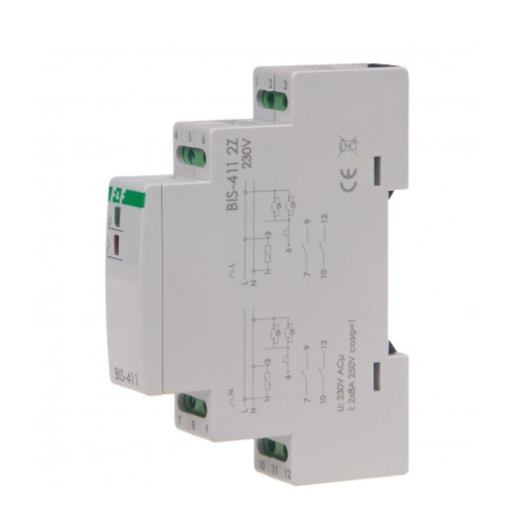 - Przekaźnik bistabilny BIS-411 2Z 230V jednokanałowy z dwoma niezależnymi stykami roboczymi 2 x NO na szynę F&F 4567