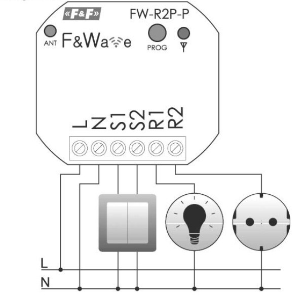 Przekaźnik bistabilny FW-R2P-P wielofunkcyjny 2-kanałowy do montażu w puszce podtynkowej Ø60 F&Wave F&F