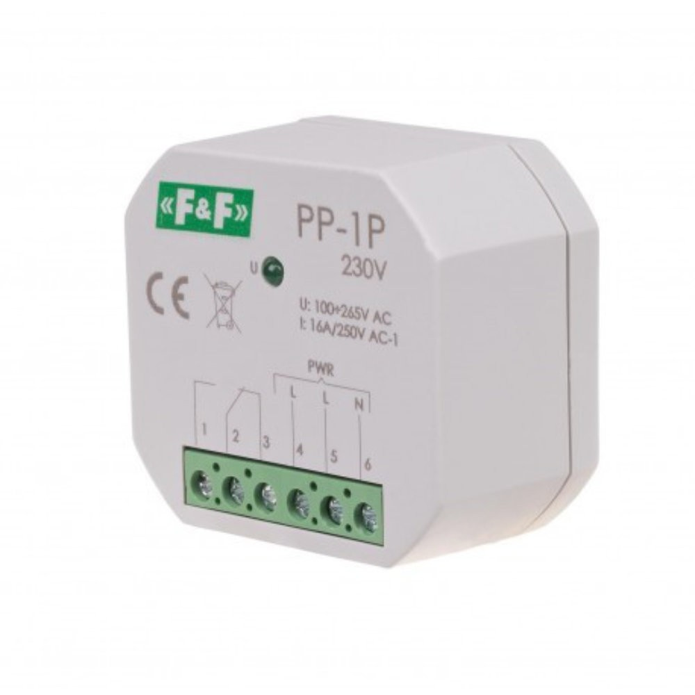 Przekaźnik elektromagnetyczny do puszki zielona lampka F&F PP-1P-230V