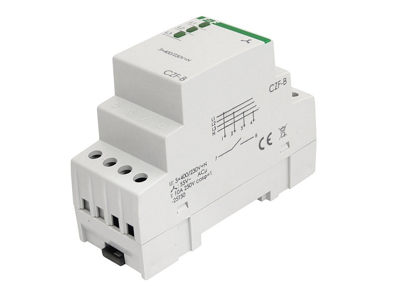 - CZF-B Przekaźnik kontroli faz Czujnik zaniku fazy ze stałym progiem asymetrii 230V max 10A Przekaźnik zaniku i asymetrii faz 10A 1Z 4sek 55V F&F