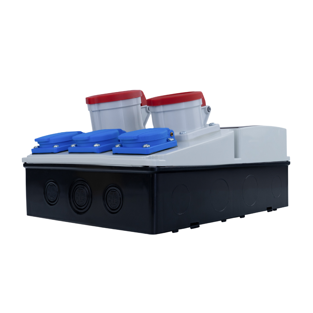 - Kompaktowa i zwarta obudowa wykonana z najlepszej jakości materiałów wyposażona w 3 gniazda 230V 16A oraz 2 gniazda siłowe 32A 400V oraz 16A 400V