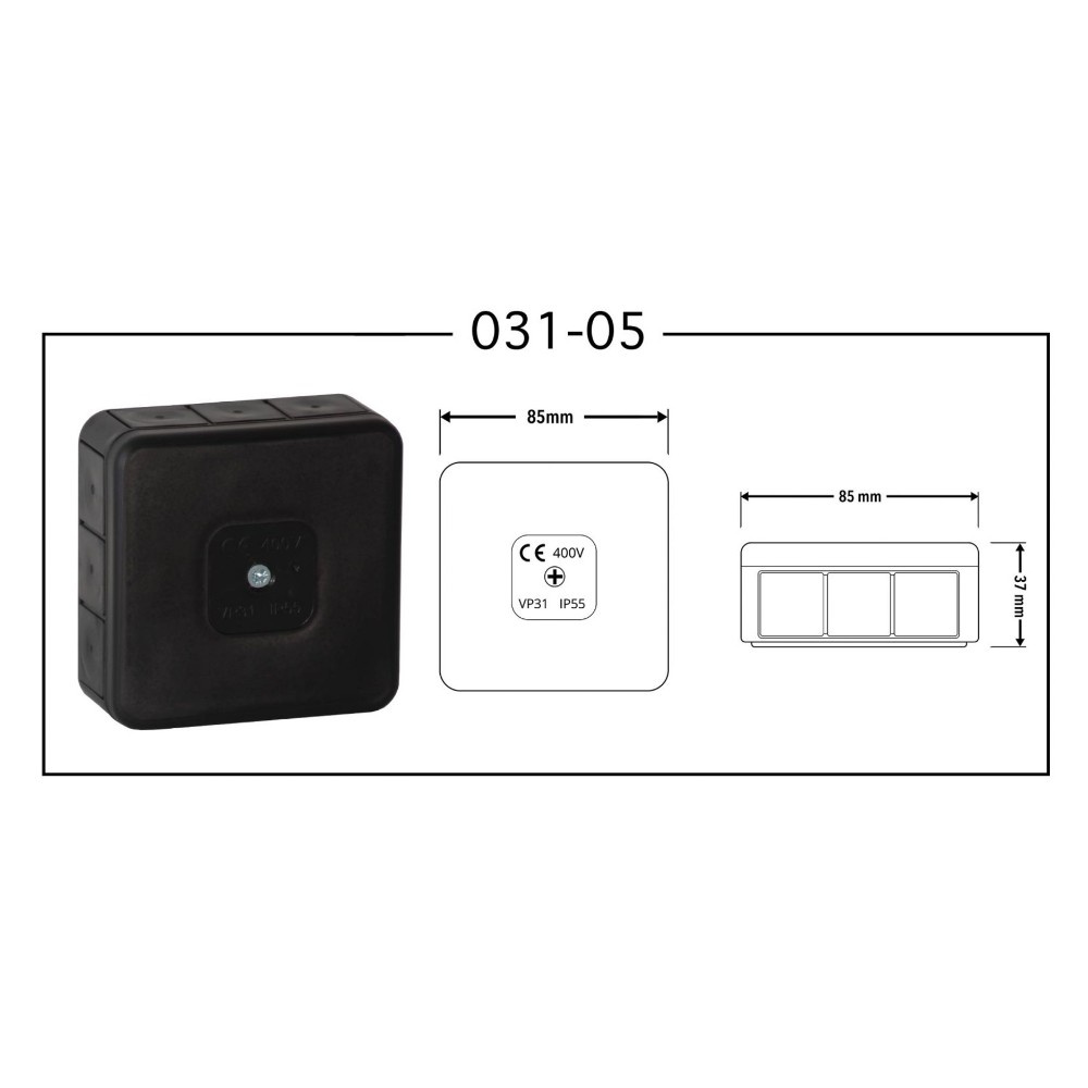 ➡️ Puszka instalacyjna hermetyczna, 12-wlotowa, z gumowymi dławikami, bez zacisków, w kolorze czarnym. Puszka posiada wymiary 85x85x37mm oraz 12 wlotów kablowych. Charakteryzuje się stopniem ochrony IP55, który zapewnia wysoką ochronę przed wnikaniem pyłu oraz kropel wody Puszka instalacyjna dedykowana jest do montażu natynkowego.