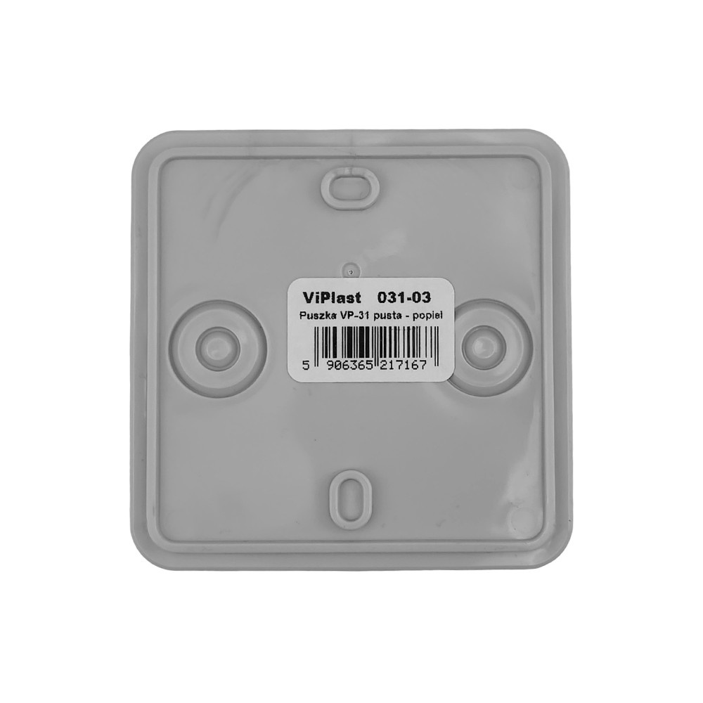 Puszka elektryczna instalacyjna pusta o wymiarach 85x85x37mm z klasą szczelności IP55. Popielowa puszka elektryczna 031-03 ViPlast, do montażu natynkowego. Hermetyczna puszka, ze stopniem ochrony IP55, posiada 12 wejść na przewody elektryczne.