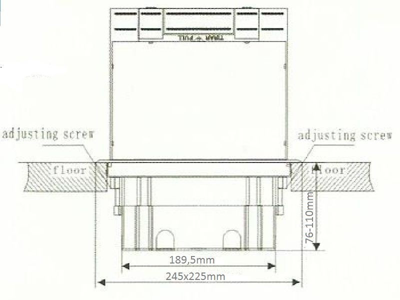 245 x 225 x 76 do 110 mm (możliwość regulacji wysokości montażu pokrywy) |