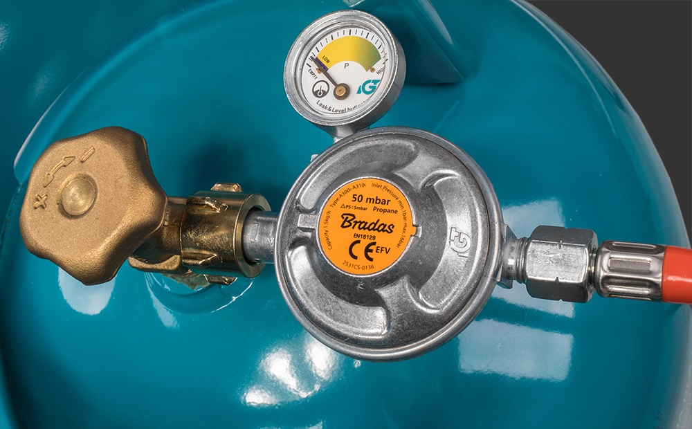- Reduktor posiada manometr wskazujący aktualne ciśnienie w butli, a także zawór bezpieczeństwa, który uaktywnia się, gdy urządzenie gazowe ma większy poziom zużycia gazu.