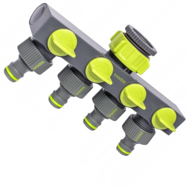 4-drożny rozdzielacz ogrodowy z czterema niezależnymi regulowanymi zaworami na kran 1" z redukcją 3/4".