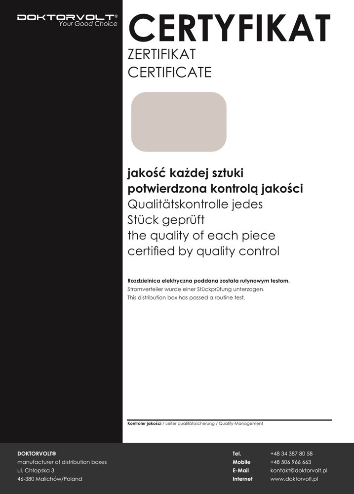 Firma Doktorvolt® została założona w 2013 roku. Dynamicznie rozwijające się przedsiębiorstwo zdobyło rynek polski i zagraniczny. Siedziba firmy mieści się w Malichowie w województwie opolskim, gdzie znajduje się nowoczesna hala produkcyjna i magazyn. Firma specjalizuje się w produkcji rozdzielnic budowlanych, wyróżniając się jakością i solidnością. Każda rozdzielnica zbudowana jest z wysokiej jakości komponentów. Produkty spełniają normy i standardy bezpieczeństwa obowiązujące w Unii Europejskiej.
