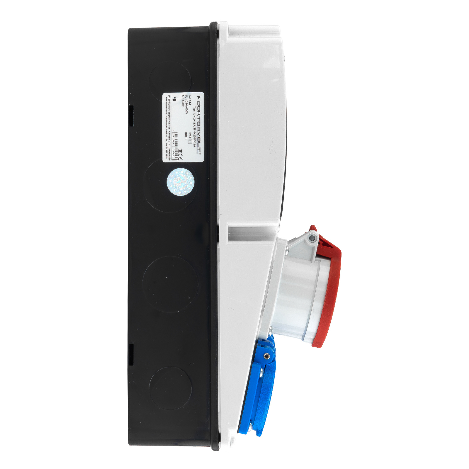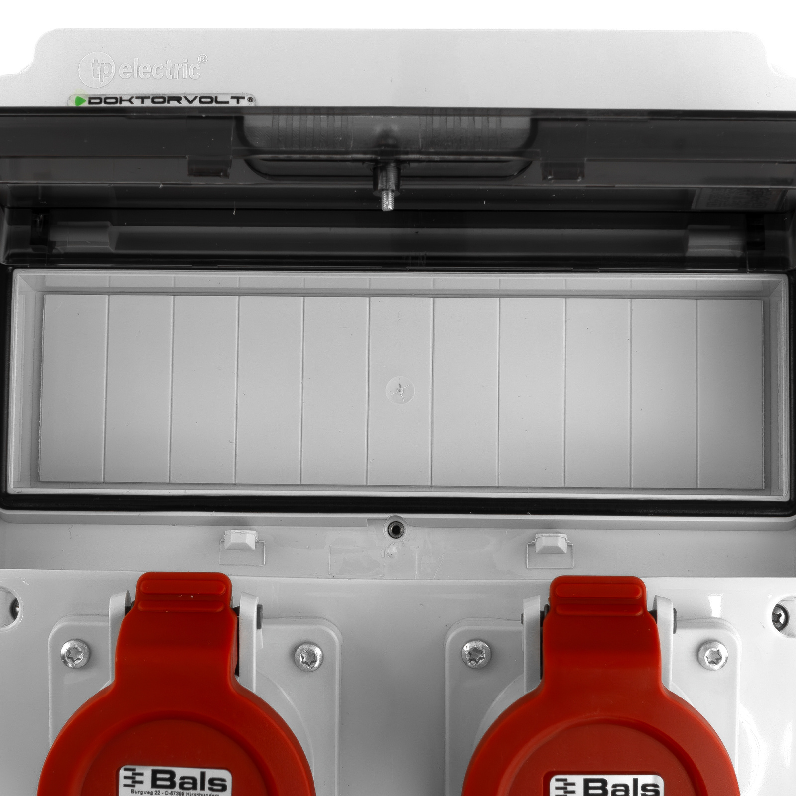 - Gotowa do użycia rozdzielnica budowlana JUN 2x16A 4x230V marki Doktorvolt® z gniazdami Bals. Odporna na warunki zewnętrzne (IP44), idealna na budowę, do warsztatu i zastosowań mobilnych.