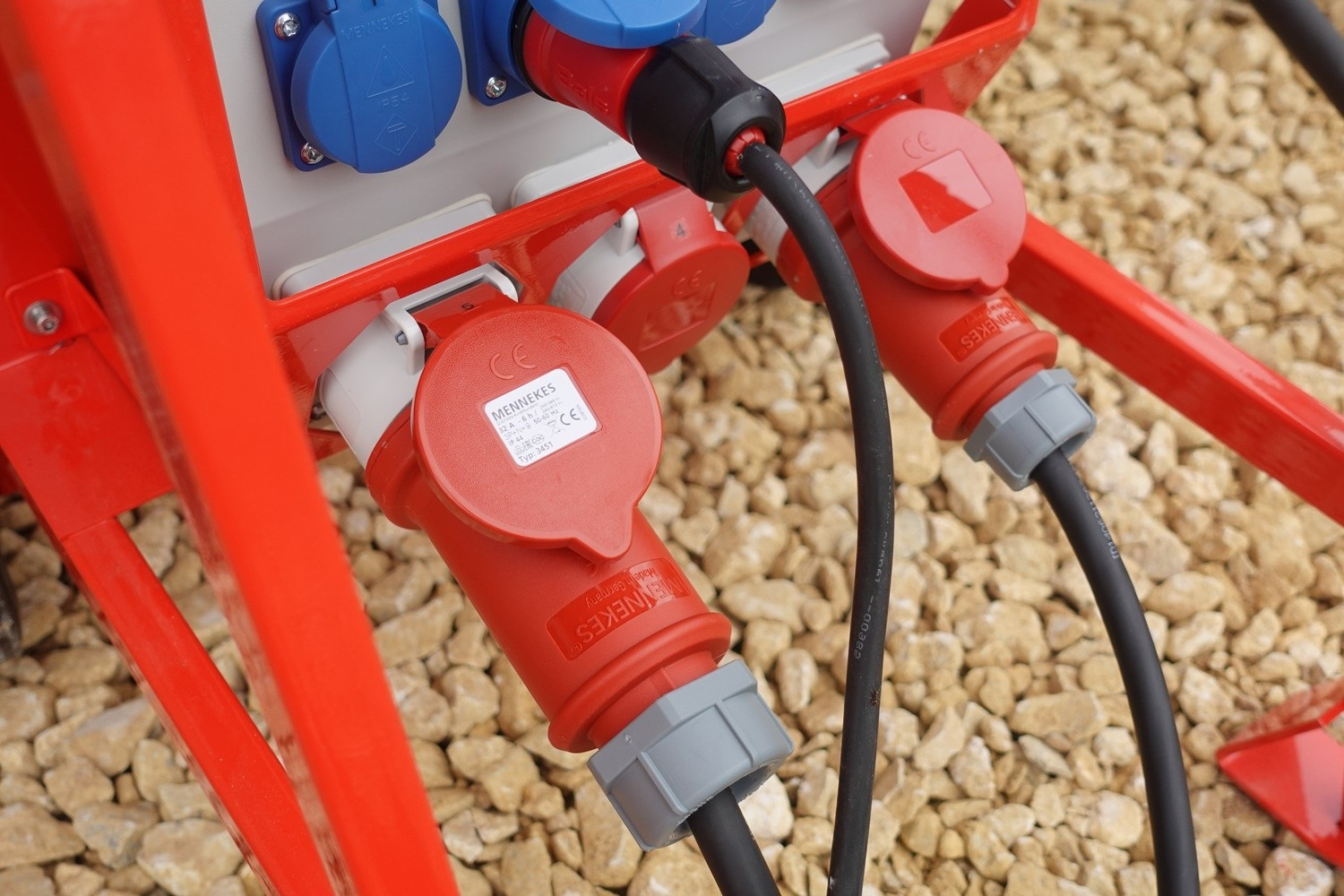 ✔️ gniazda siłowe 2x 400 V 16 A oraz 1x 400 V 32 A o klasie szczelności IP 44,