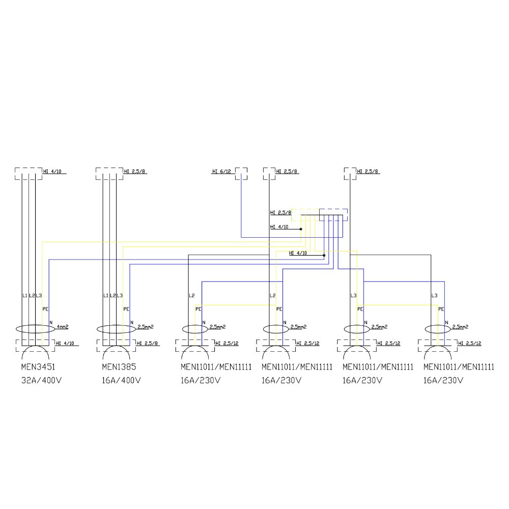 gniazda siłowe | 1 x 32A 5P 400V IP44 czerwone Typ 3451 Mennekes 1 x 16A 5P 400V IP44 czerwone Typ 1385 Mennekes |