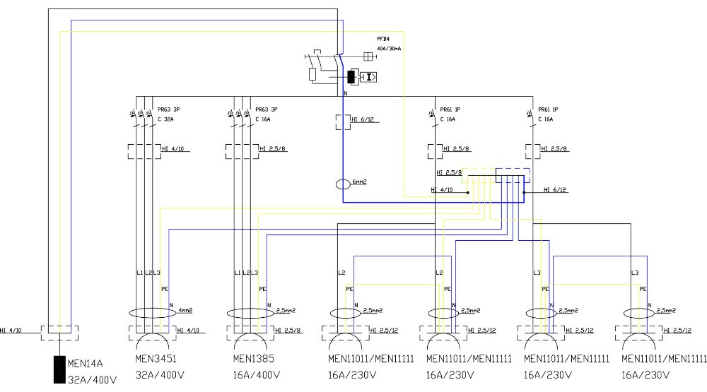 ✔️ zabezpieczenie nadprądowe gniazd siłowych C32 3P 10kA, C16 3P 10kA,