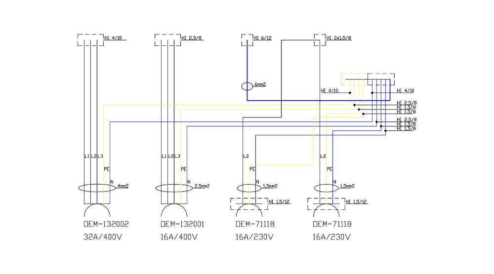 ✔️ wyposażona w dwa gniazda 230 V 16 A oraz dwa gniazda siłowe 1x 400 V 32 A, 1x 400 V 16 A producenta Bals,