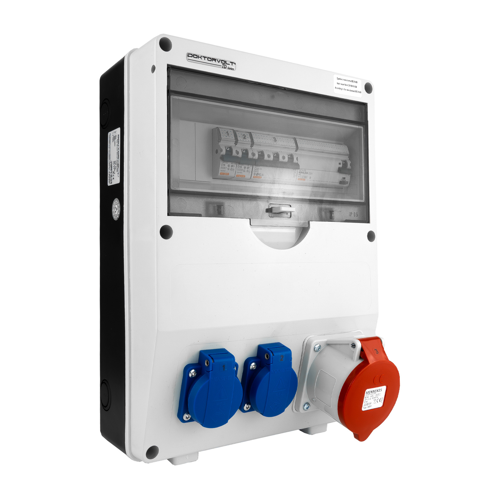 2x 230 V 16 A IP54 Mennekes Schuko