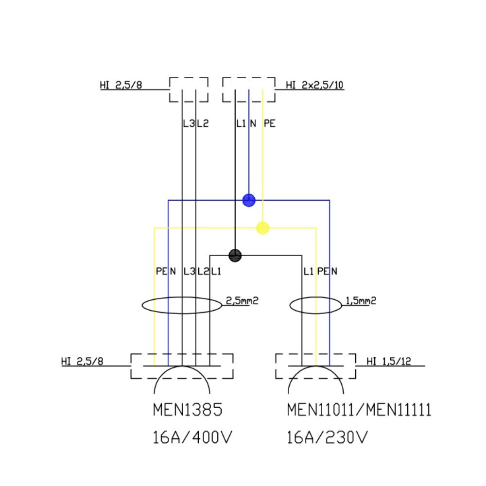 ✔️ wyposażona w gniazdo 230 V 16 A oraz gniazdo siłowe 16 A 400 V, Mennekes,