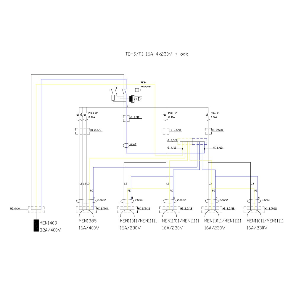gniazda 230V 4x 230V 16A Mennekes 11011 IP54 2P+E Schuko