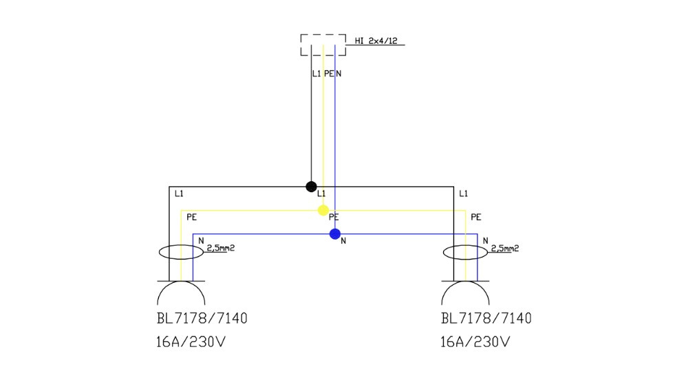 2x230V 16A 3P 2P+PE 250V prąd zmienny AC IP44 niebieski Typ 7140 Bals |