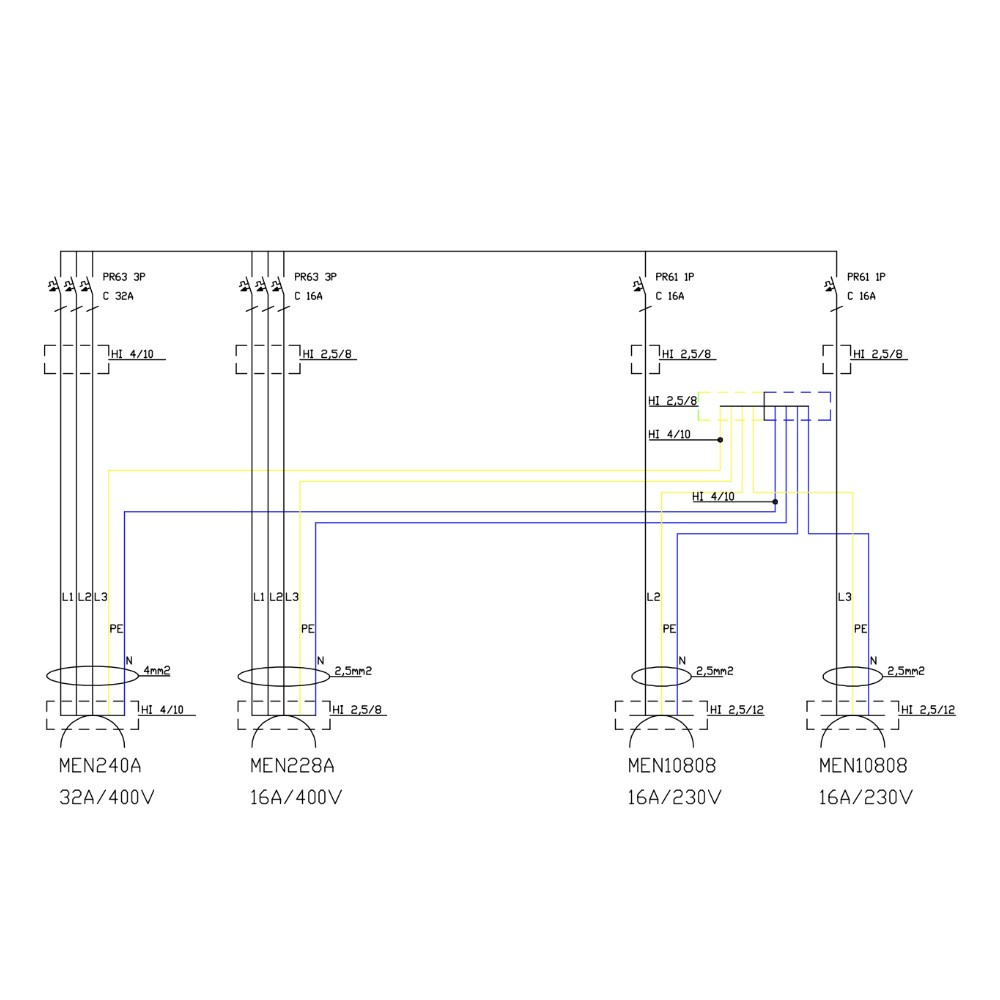✔️ zabezpieczenie nadprądowe gniazda siłowego 1x C32 10kA 3P , 1x C16 10kA 3P
