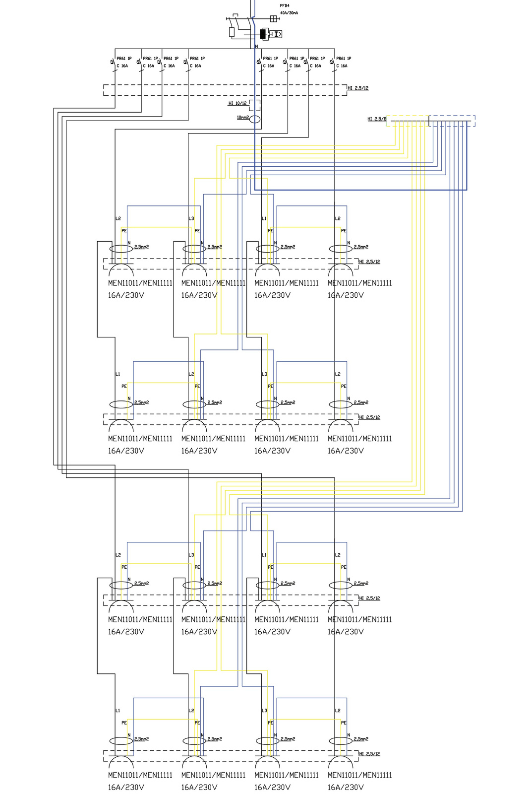 16 x 230V 16A 11111 IP54 2P+EMennekes Niemiecki system Schuko