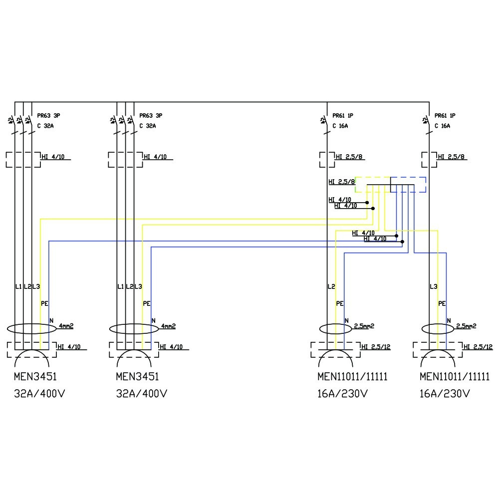 ✔️ zabezpieczenie nadprądowe gniazd siłowych 2x C32 10kA 3P