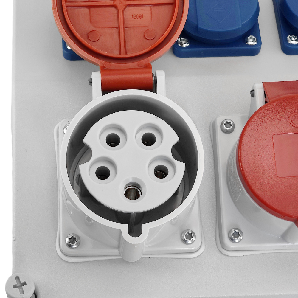 ✔️ gniazdo siłowe 2x 400V 16A, 1x 400V 32A o klasie szczelności IP 44,