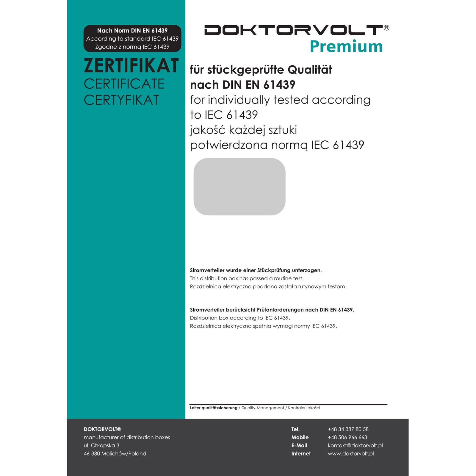 Produkty marki DOKTORVOLT są rutynowo testowane, aby zapewnić najwyższą jakość produktów. Każdy produkt po przejściu testów otrzymuje indywidualny certyfikat potwierdzający przeprowadzoną kontrolę jakości. Firma wykorzystuje w procesie produkcyjnym certyfikowany system TÜV SÜD, który świadczy o wysokiej jakości.