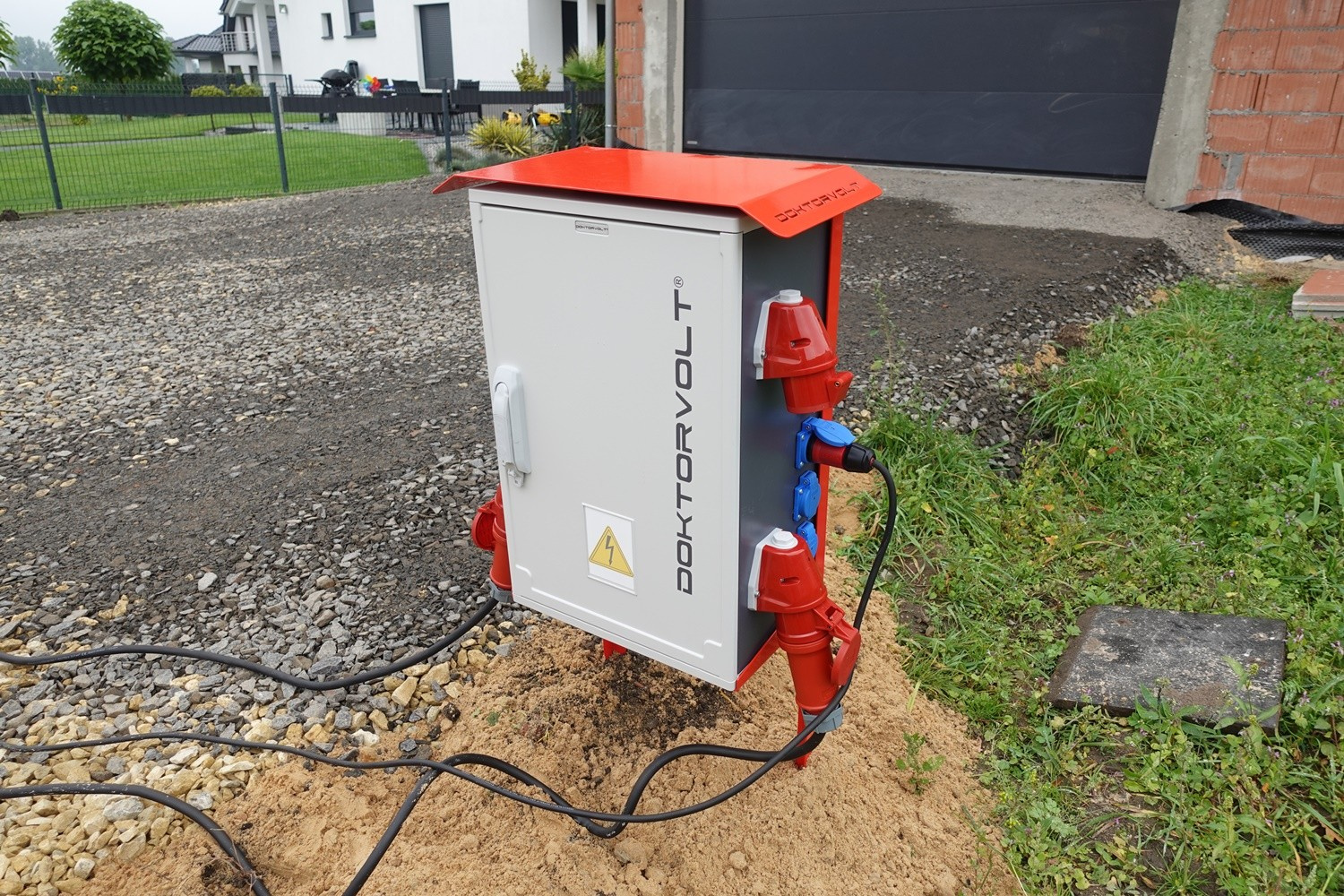 • Rozdzielnica budowlana przenośna 32A IP44 z gniazdami siłowymi 400V i 230V oraz zabezpieczeniami różnicowoprądowymi idealna na budowę rozdzielnia elektryczna Doktorvolt z certyfikatem skrzynka budowlana z zabezpieczeniem