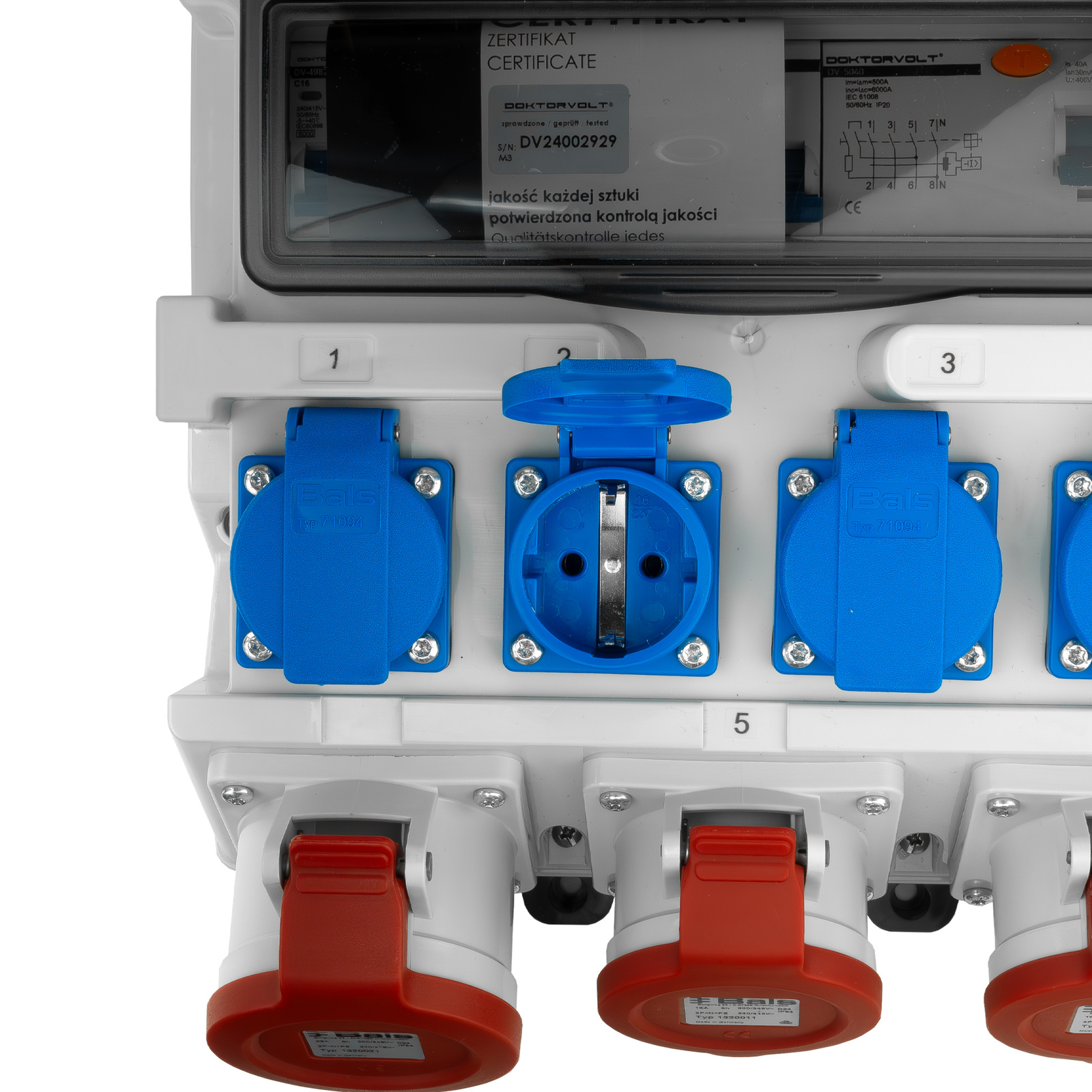 | gniazda 230V | 4 x 230V 16A Bals IP54 Niemiecki system Schuko |