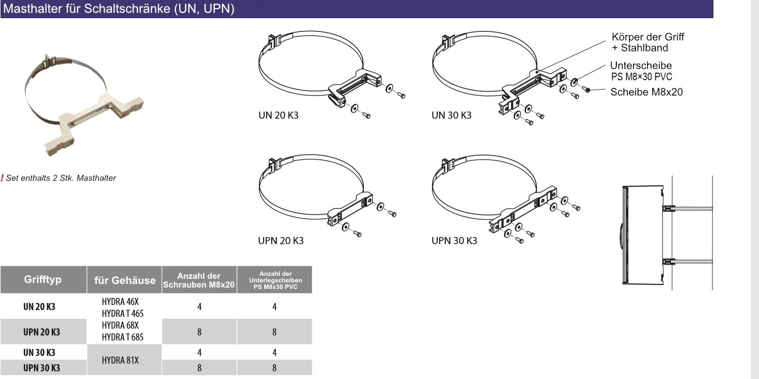Uchwyty do mocowania obudowy na słupie UPN 20 K3 do obudowy HYDRA 46x