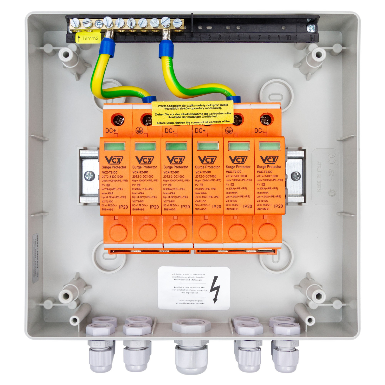 ✔️ w celu ochrony antyprzepięciowej DC wykorzystano ogranicznik przepięć uznanej marki, który charakteryzuje się wysoką wydajnością pracy i klasą ochrony T2,