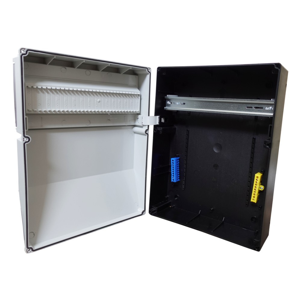Obudowa rozdzielnicy natynkowej nadaje się do zastosowania zarówno wewnątrz, jak i na zewnątrz. IP66 gwarantuje ochronę przed wodą i pyłem, idealna do instalacji domowych, garaży, warsztatów, hal produkcyjnych i placów budowy. Produkt jest kompatybilny z zabezpieczeniami nadprądowymi i różnicowoprądowymi, istnieje możliwość wycięcia otworów na gniazda 16A 230V / 16A 400V / 32A 400V.