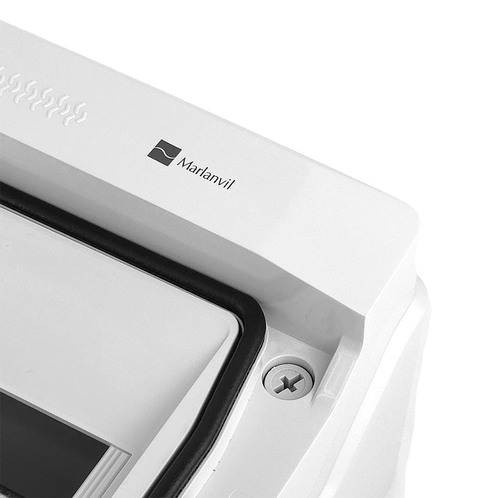 Bezhalogenowa obudowa rozdzielnicy marki Marlanvil wykonana jest z wysokiej klasy materiału technopolimerowego posiadająca poliwęglanowe transparentne drzwi, które ułatwiają dostęp do wewnętrznych komponentów. Rozdzielnica występuje w szarym kolorze RAL 7035, posiada śruby ze stali nierdzewnej oraz gumowe uszczelki EPDM. Rozdzielnica przeznaczona jest zarówno do montażu wewnętrznego, jak i zewnętrznego ze względu na wysoki stopień ochrony IP65 oraz odporność na uderzenia IK07. Połączenie obu tych standardów gwarantuje bezpieczne użytkowanie rozdzielnicy wewnątrz pomieszczenia oraz na zewnątrz.