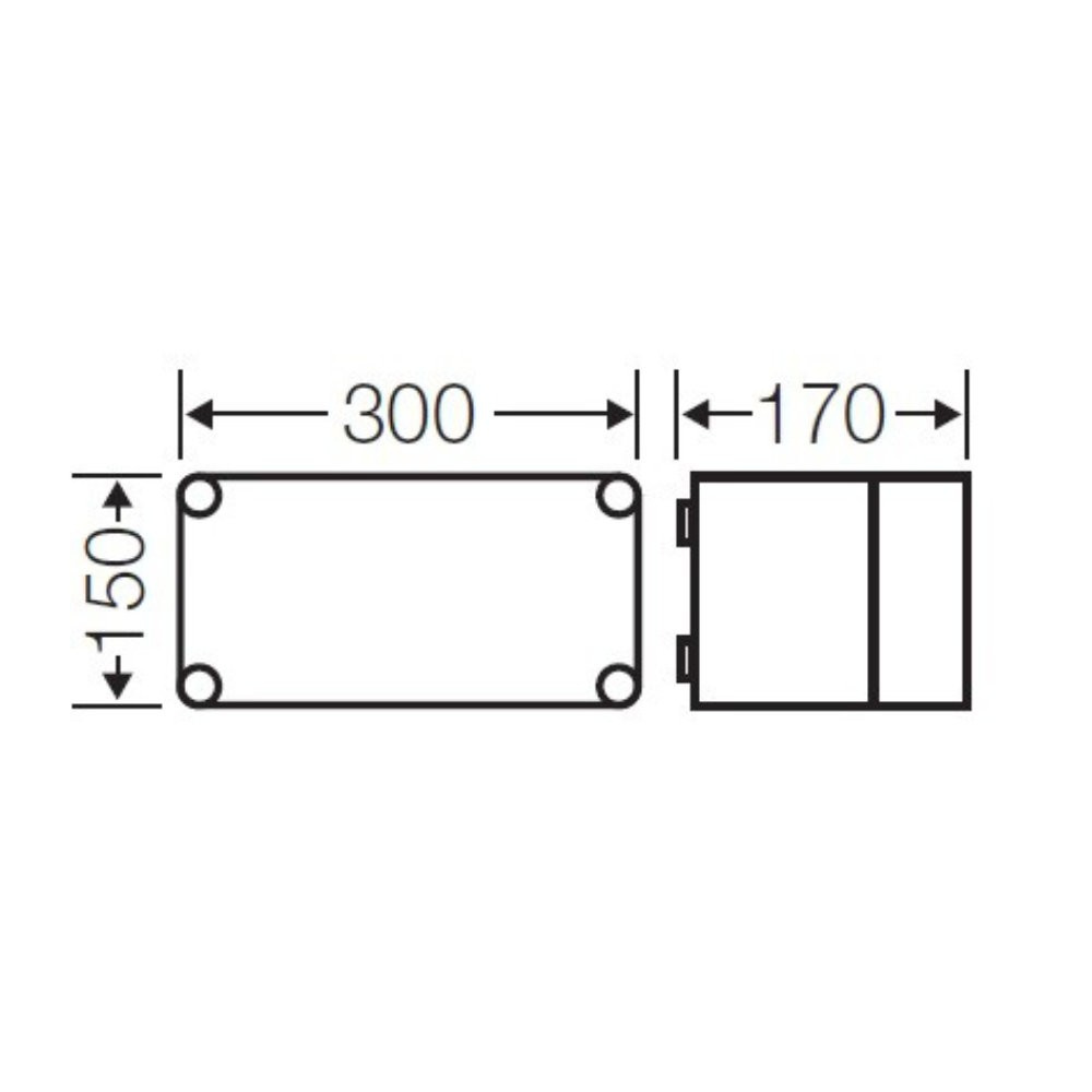 - Wymiary montażowe: szer. 275 x wys. 125 x głęb. 150 mm