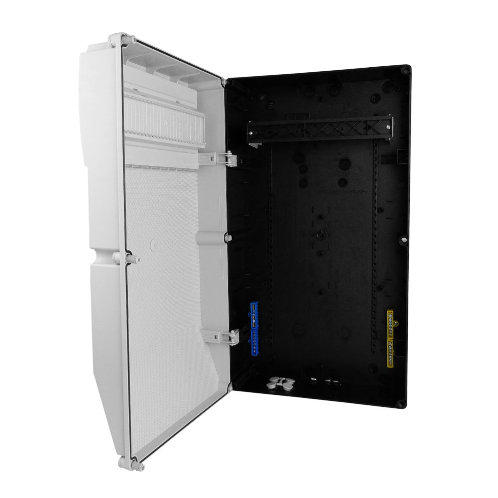 Obudowa rozdzielnicy natynkowej nadaje się do zastosowania zarówno wewnątrz, jak i na zewnątrz. IP66 gwarantuje ochronę przed wodą i pyłem, idealna do garaży, warsztatów, hal produkcyjnych.