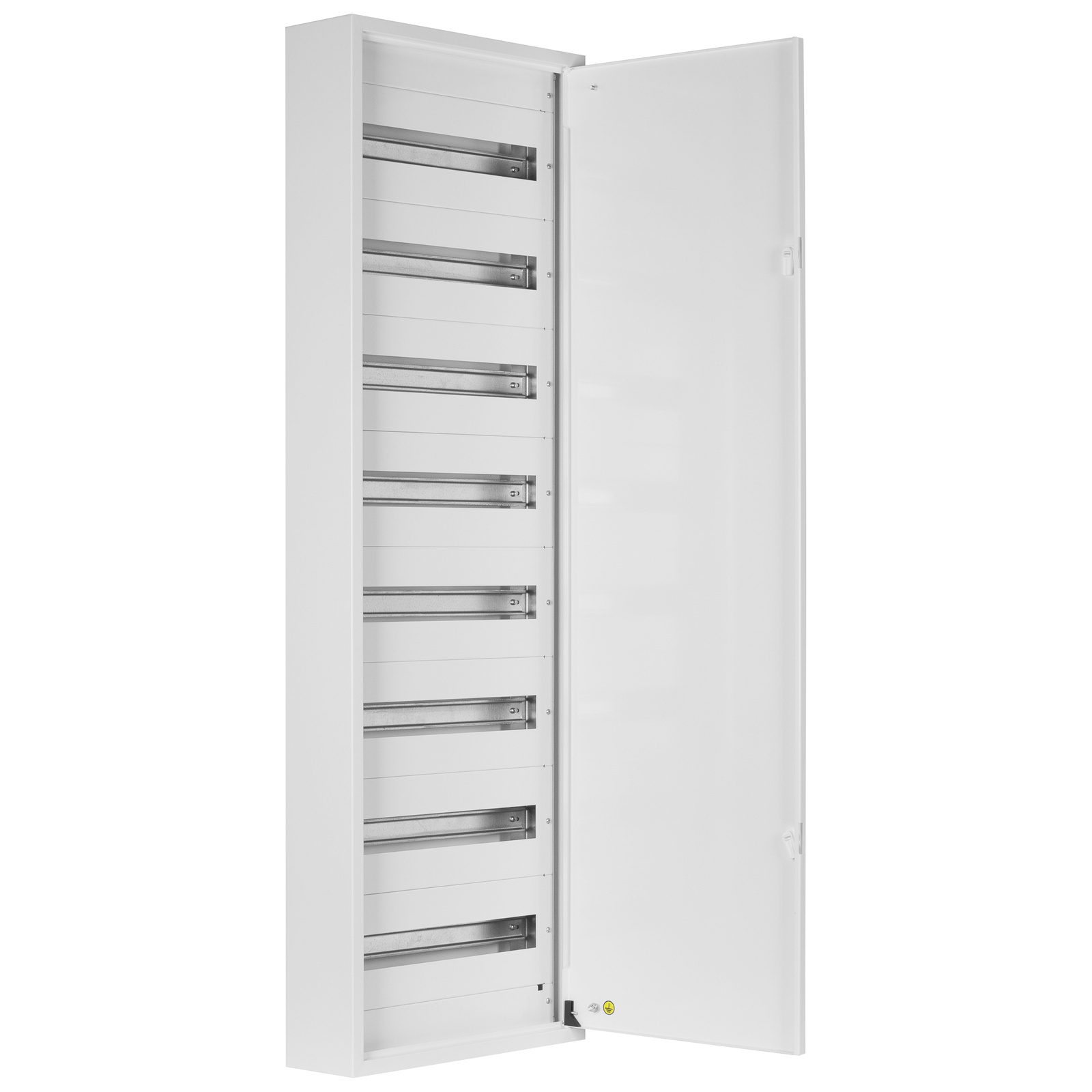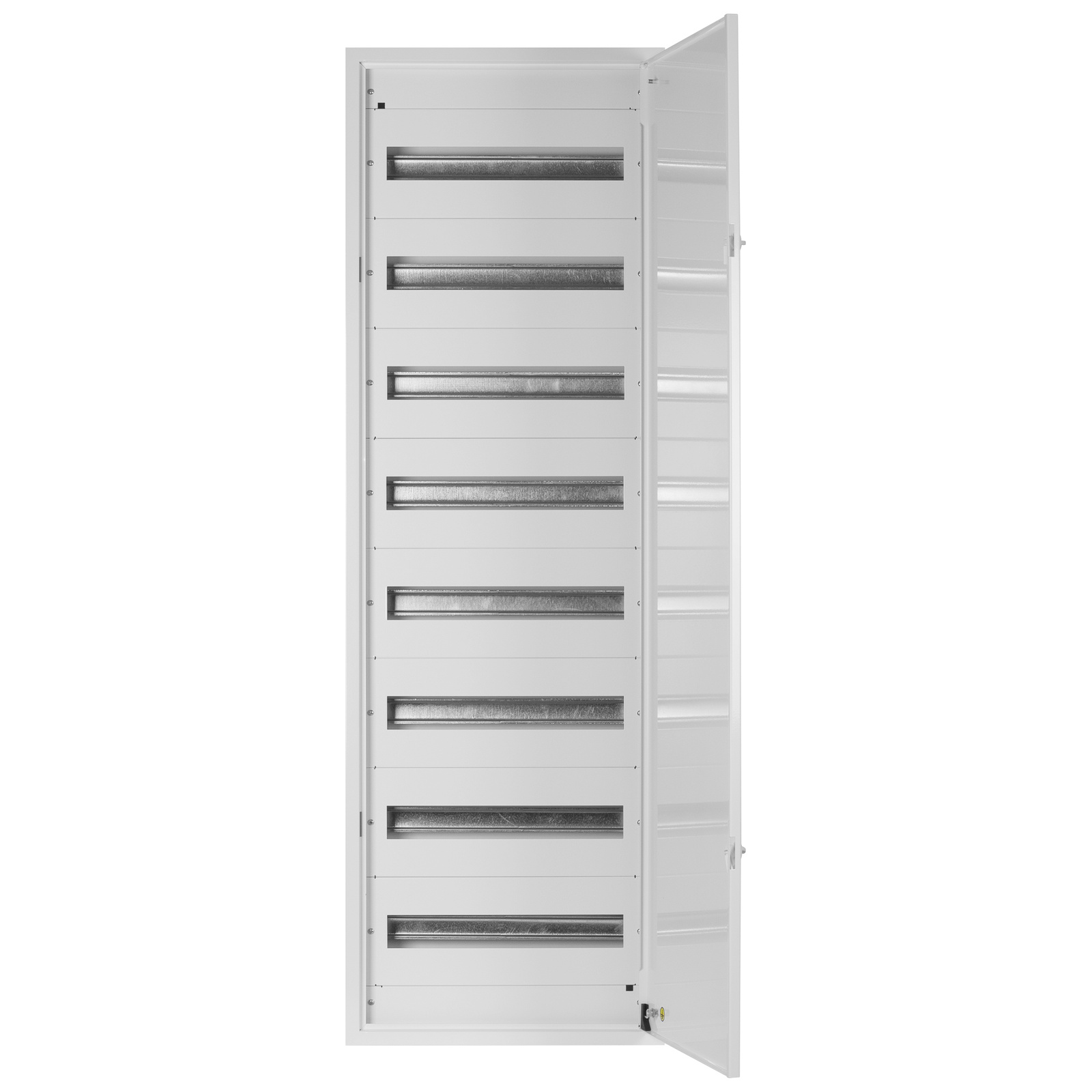 • Rozdzielnica natynkowa wyposażona w 8 rzędów o łącznej liczbie 144 modułów. Wykonana z stalowej blachy o grubości 1mm sprawdzi się w najbardziej wymagającym miejscu pracy. Rozdzielnica posiada również drzwi z zamkiem.