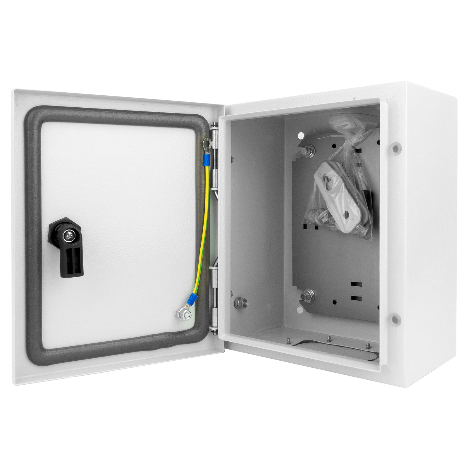 Obudowy elektryczne są wyposażone w ocynkowaną płytę montażową, co ułatwia instalację wszystkich wewnętrznych urządzeń.