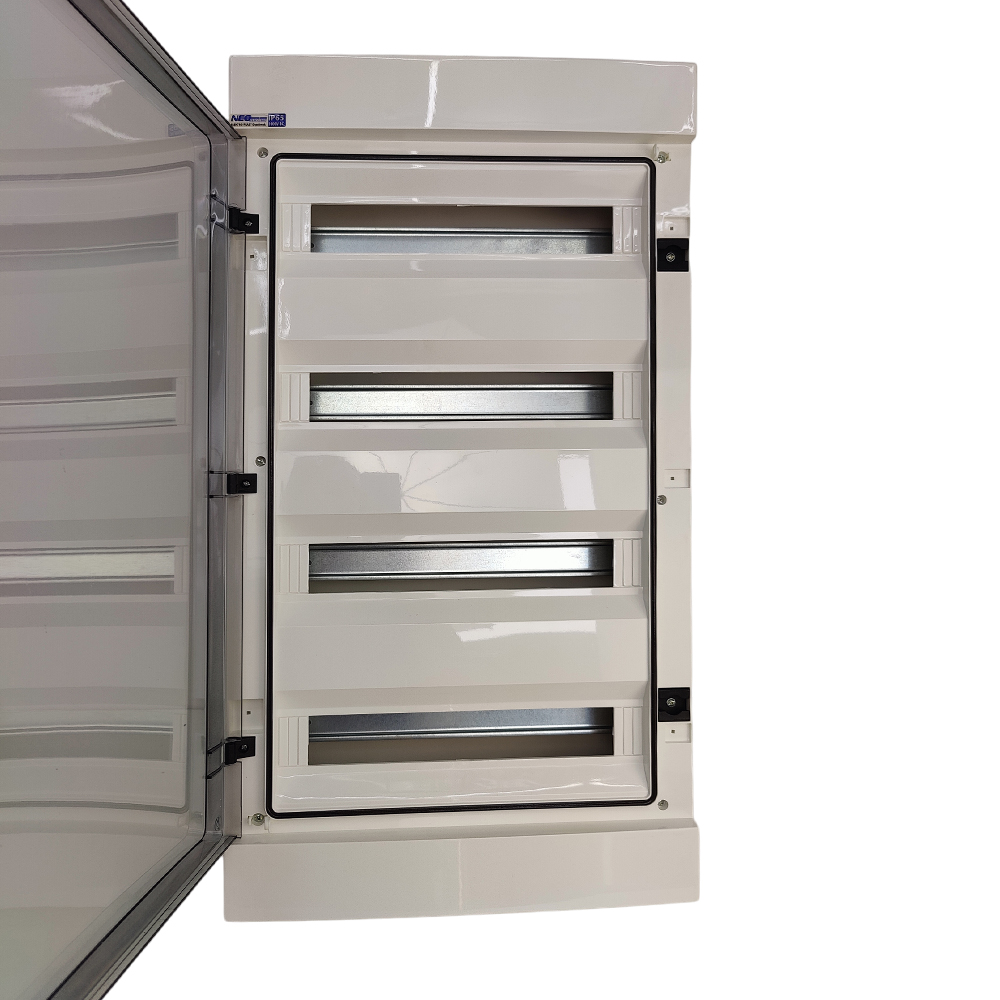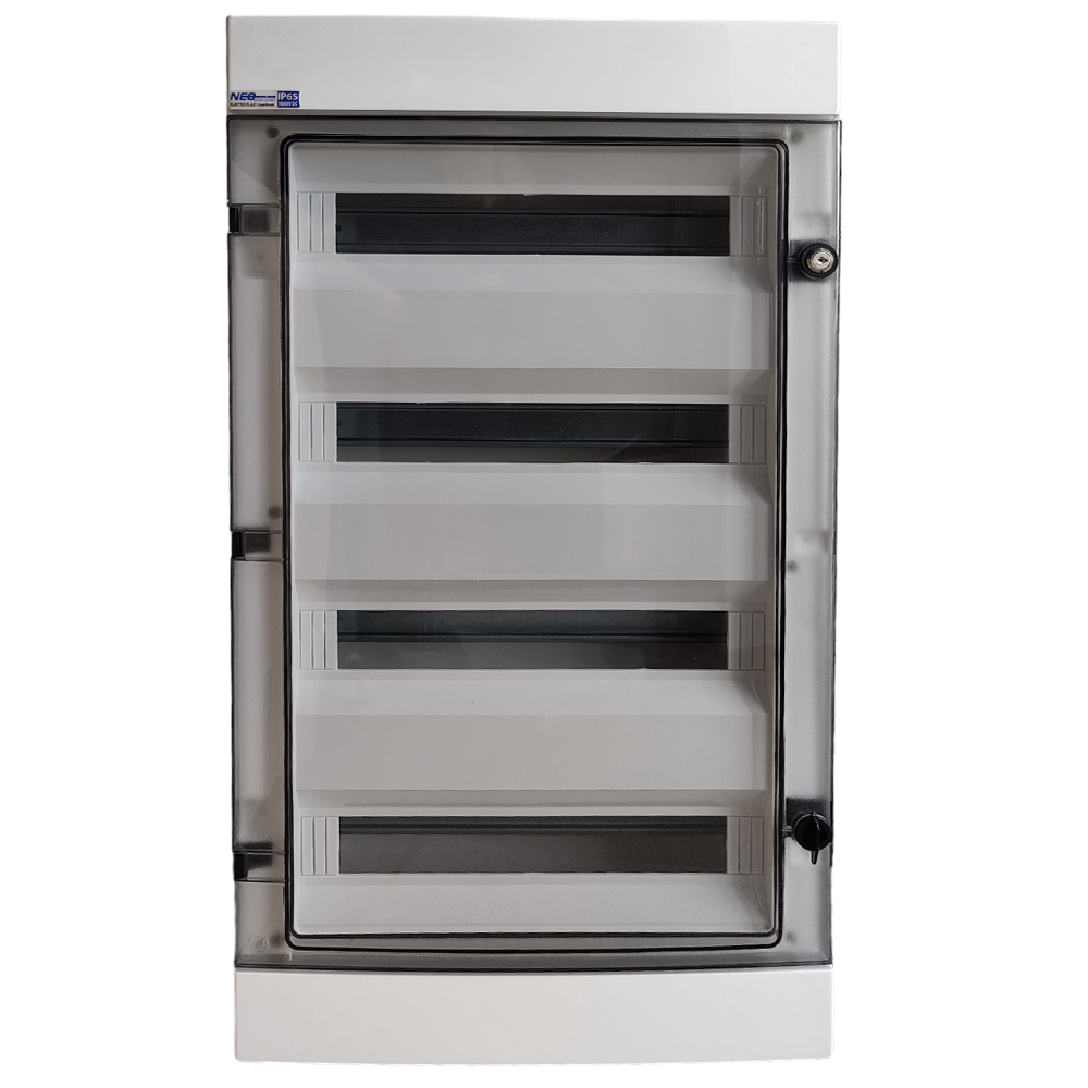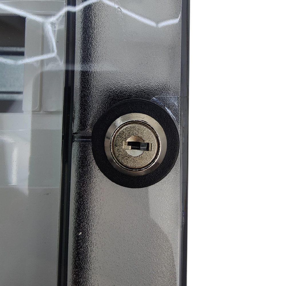 Przednia część rozdzielni posiada drzwi w kolorze transparentnym. Drzwi mogą być otwierane na lewą lub prawą stronę, poprzez przekręcenie zawiasów na odpowiednią stronę, można je zamykać przy zastosowaniu zamka metalowego z kluczykiem (wybrane modele)