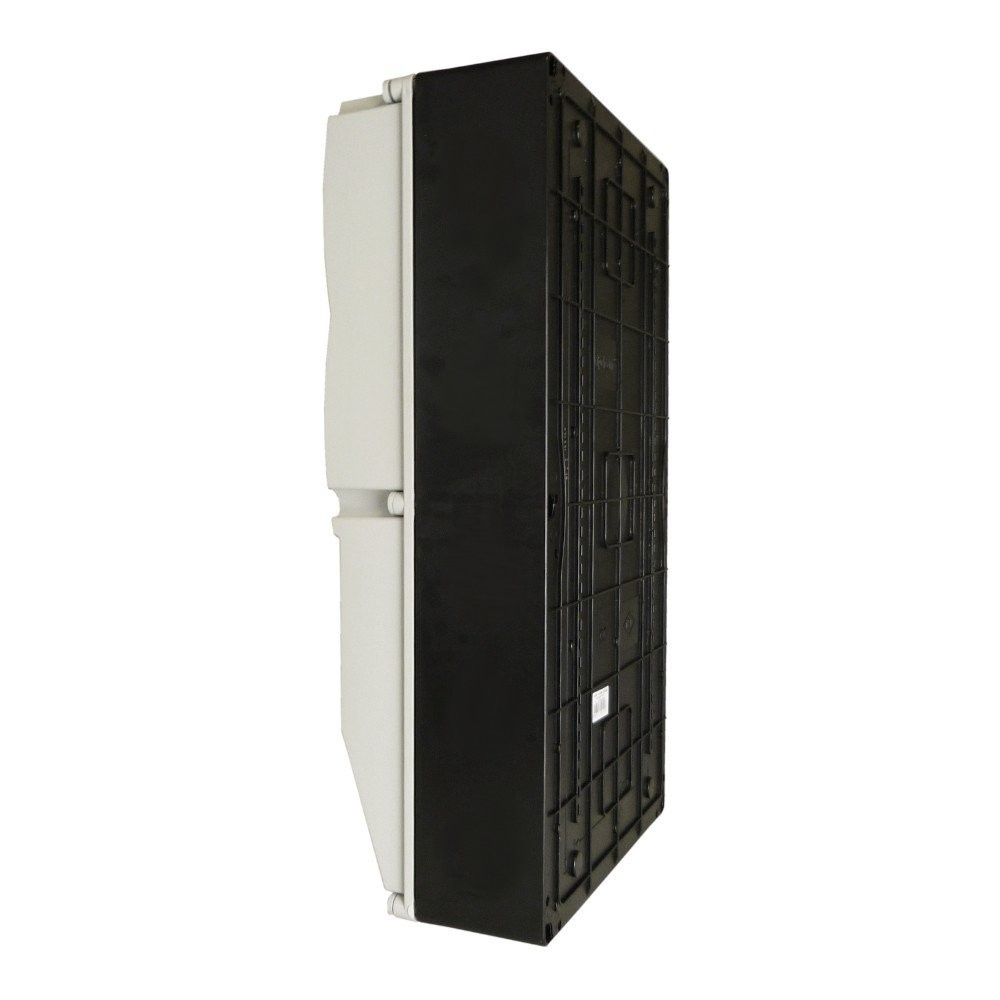 Rozdzielnica natynkowa przeznaczona do montażu zabezpieczeń, wyłączników różnicowoprądowych oraz gniazd. Obudowa IP66 z tworzywa sztucznego, z poliwęglanowymi przyciemnianymi drzwiami, membranami M40–M50, zapewnia ochronę i wygodę użytkowania.
