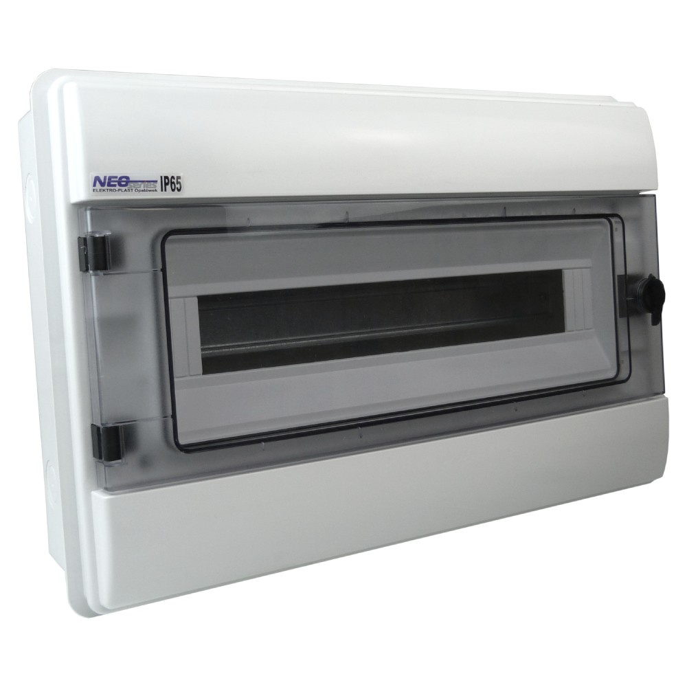 - RHp-18 Rozdzielnica hermetyczna podtynkowa 18 modułowa 1x18 IP65 z transparentnymi drzwiami seria Neo Elektro-Plast