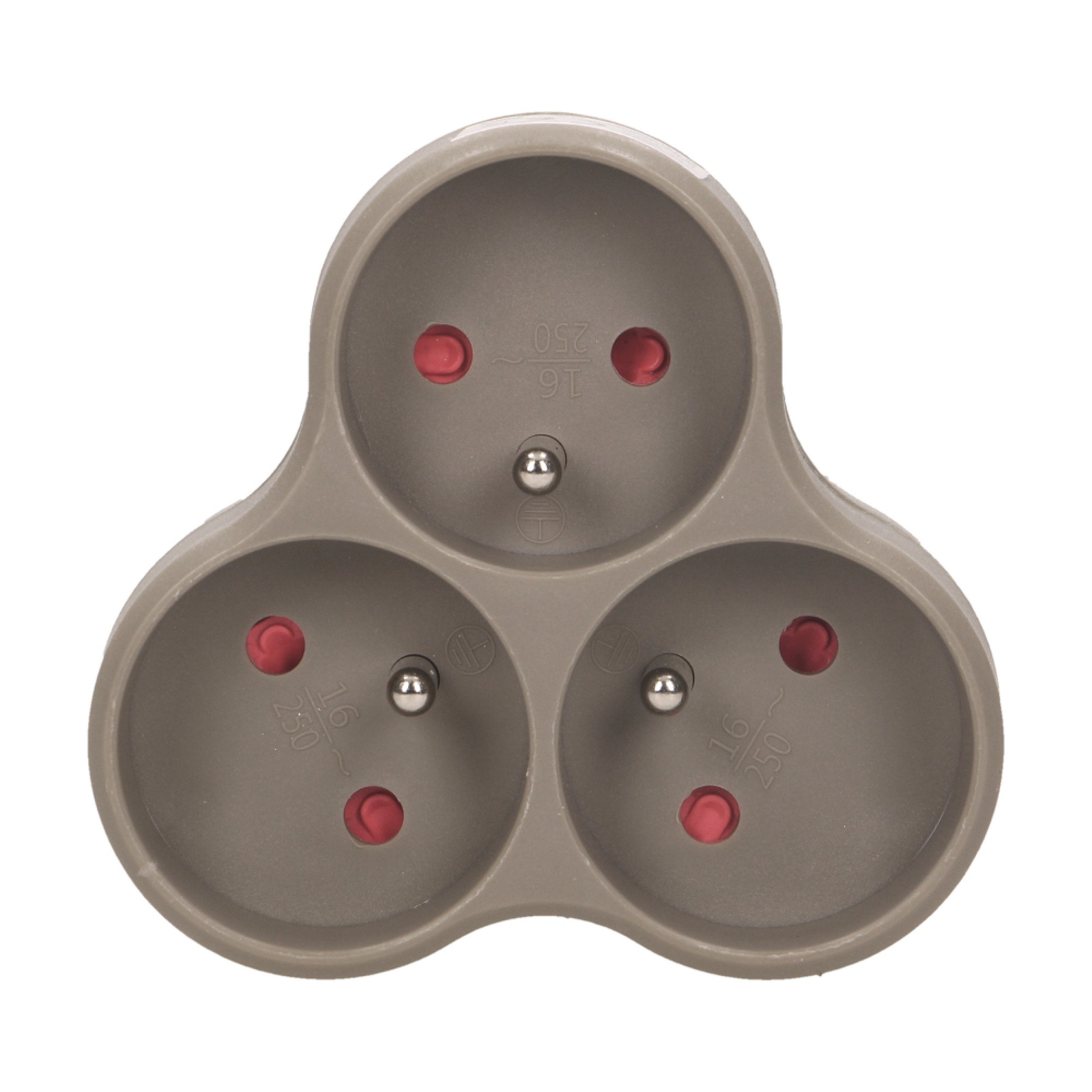 - Rozgałęźnik 3x2P+Z, szaryRozgałęźnik trójgniazdowy z uziemieniem, pasujący do każdego wnętrza, gdzie potrzeba dodatkowych gniazd.