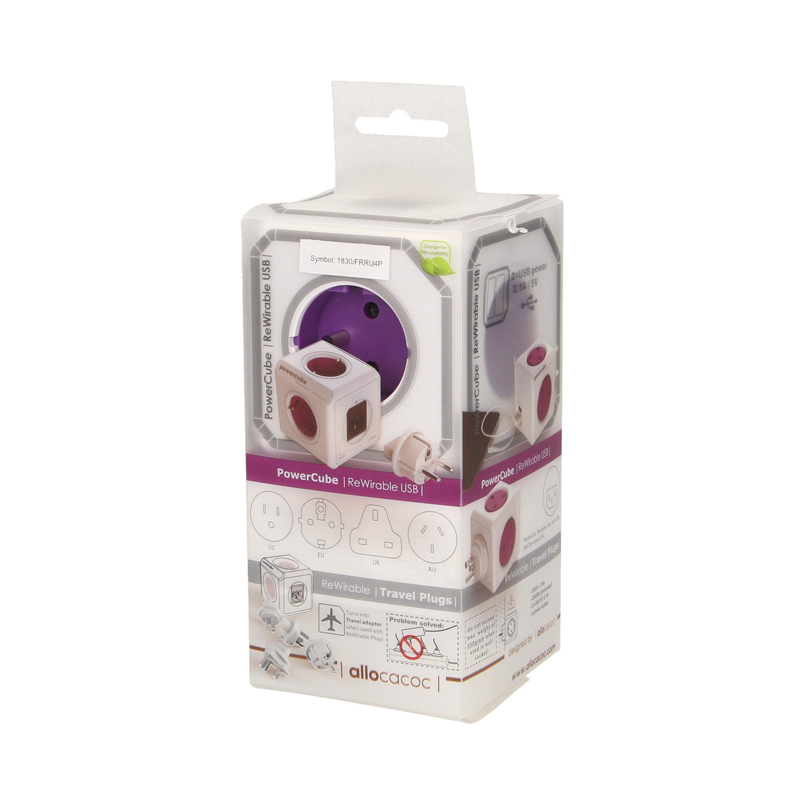 - Rozgałęźnik Power Cube ReWirable USB + 4 wtyczki podróżneRozgałęźnik modułowy + 4 wtyczki podróżne (US, EU, UK, AU).