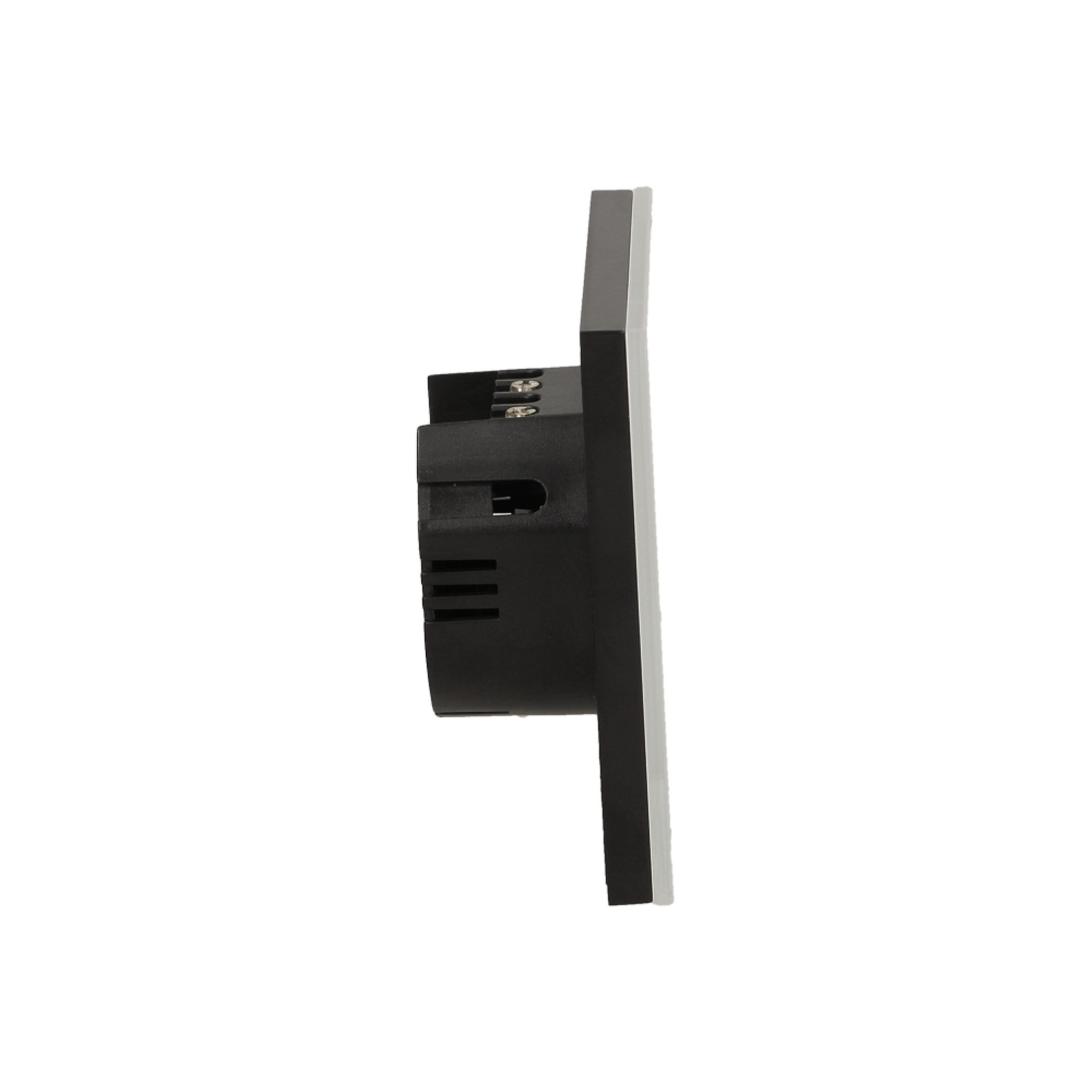 Nowoczesny ściemniacz ze szkła krystalicznego, sterowany manualnie lub bezprzewodowo za pomocą pilota zdalnego sterowania. Przeznaczony do montażu w standardowej puszce elektrycznej Ø60 mm tylko przy pomocy wkrętów montażowych.