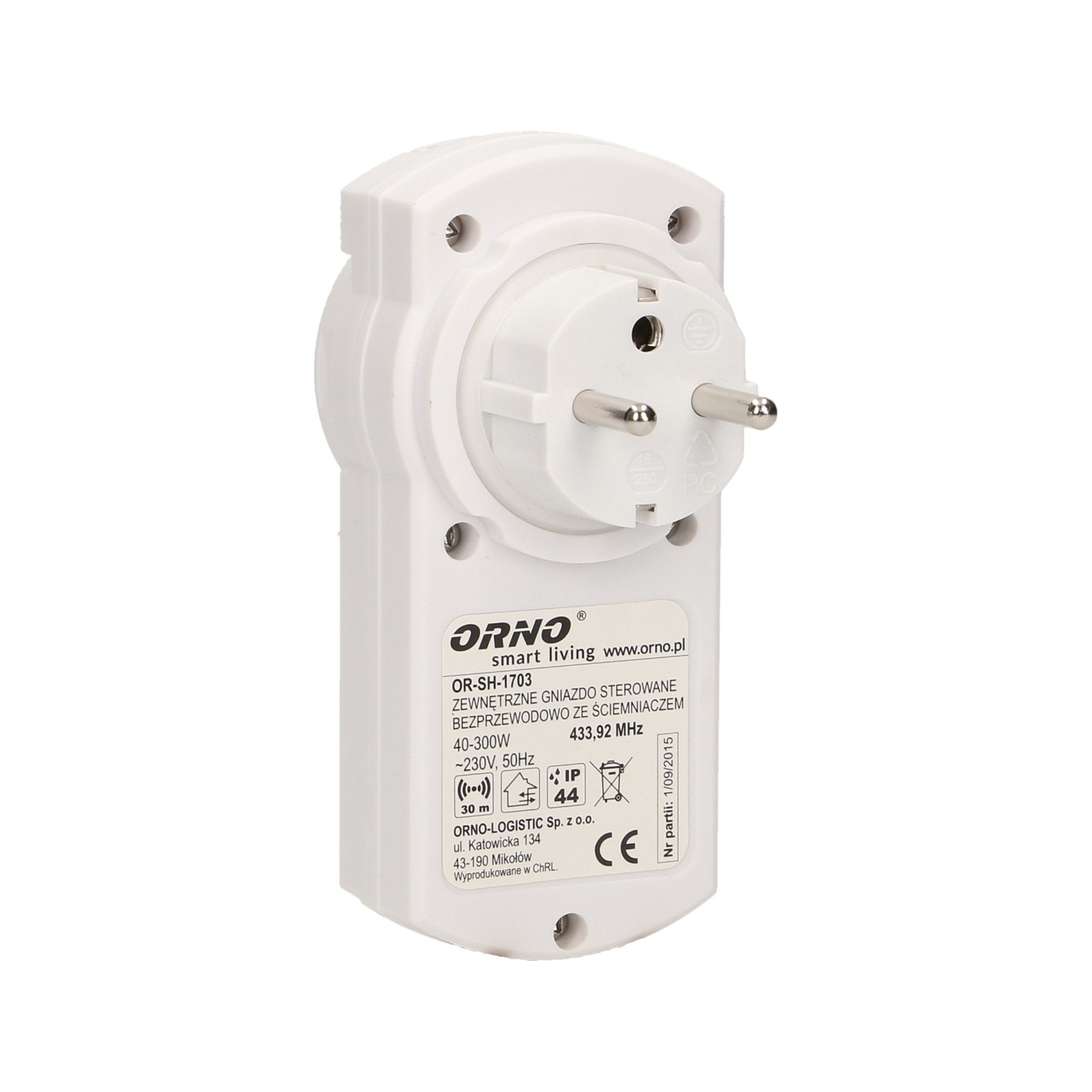 Gniazdo sieciowe zewnętrzne z funkcją ściemniania. sterowane bezprzewodowo. IP44. ORNO Smart Living OR-SH-1703