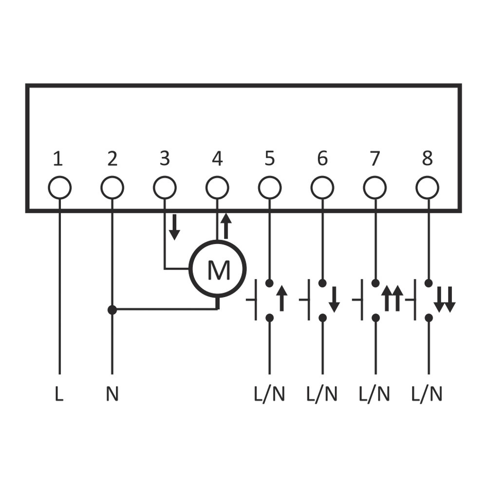 Sterownik STR przeznaczony jest do sterowania rolet (góra-dół) lub innych obiektów (np. bramy) napędzanych silnikiem elektrycznym jednofazowym prądu zmiennego za pomocą włączników chwilowych (np. dzwonkowych).