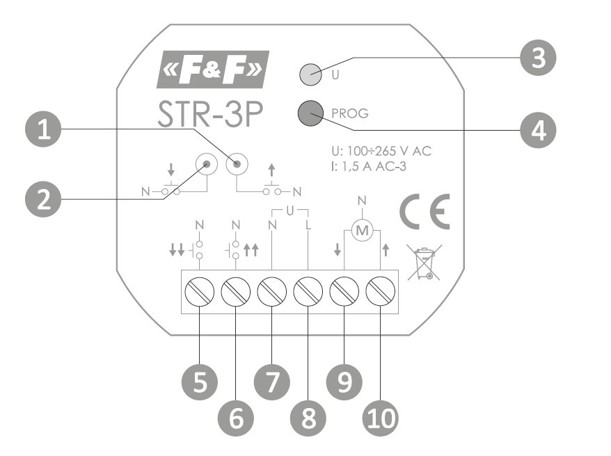 - Dopuszkowy sterownik rolet przeznaczony do otwierania i zamykania jednej rolety STR-3P F&F