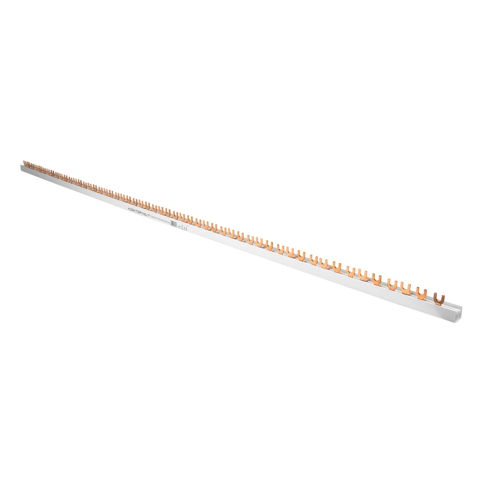 Szyna 3P z białym wykończeniem, długość 100 cm, przekrój 12 mm² – stworzona do zasilania 54 modułów w wymagających systemach. Obsługuje do 80A, doskonała do dużych szaf rozdzielczych w budownictwie i przemyśle.