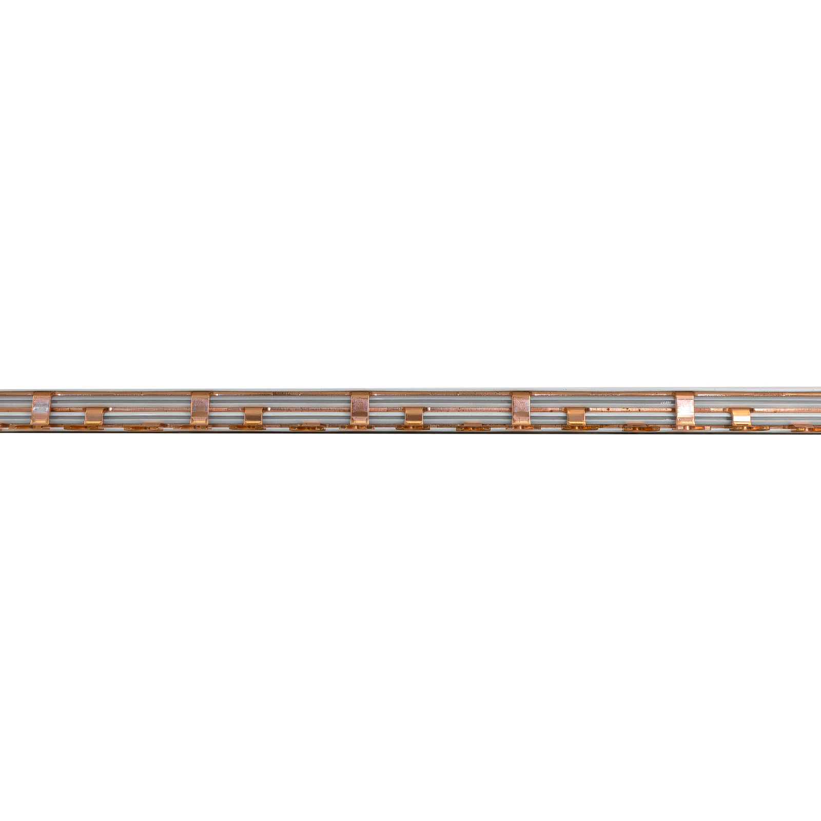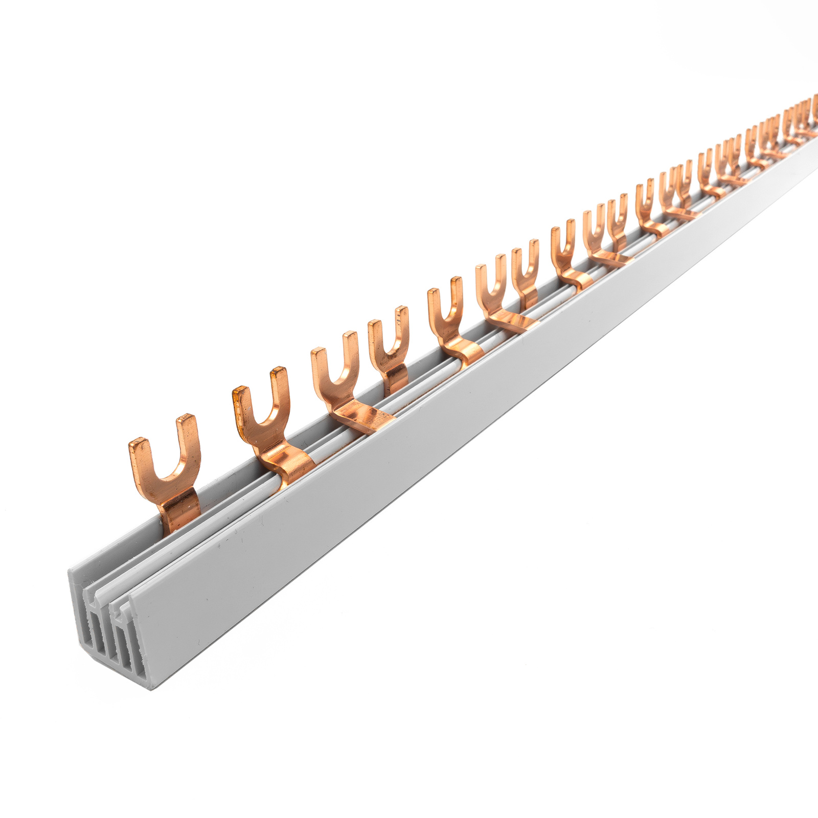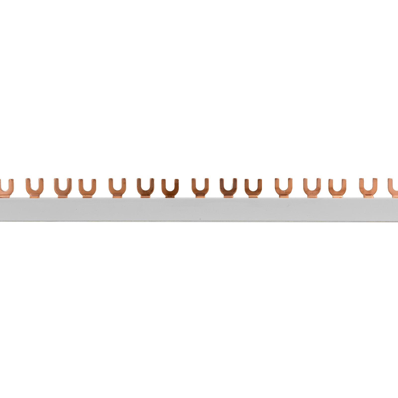 - Szyna 3P z białym wykończeniem, długość 100 cm, przekrój 12 mm² – stworzona do zasilania 54 modułów w wymagających systemach. Obsługuje do 80A, doskonała do dużych szaf rozdzielczych w budownictwie i przemyśle.