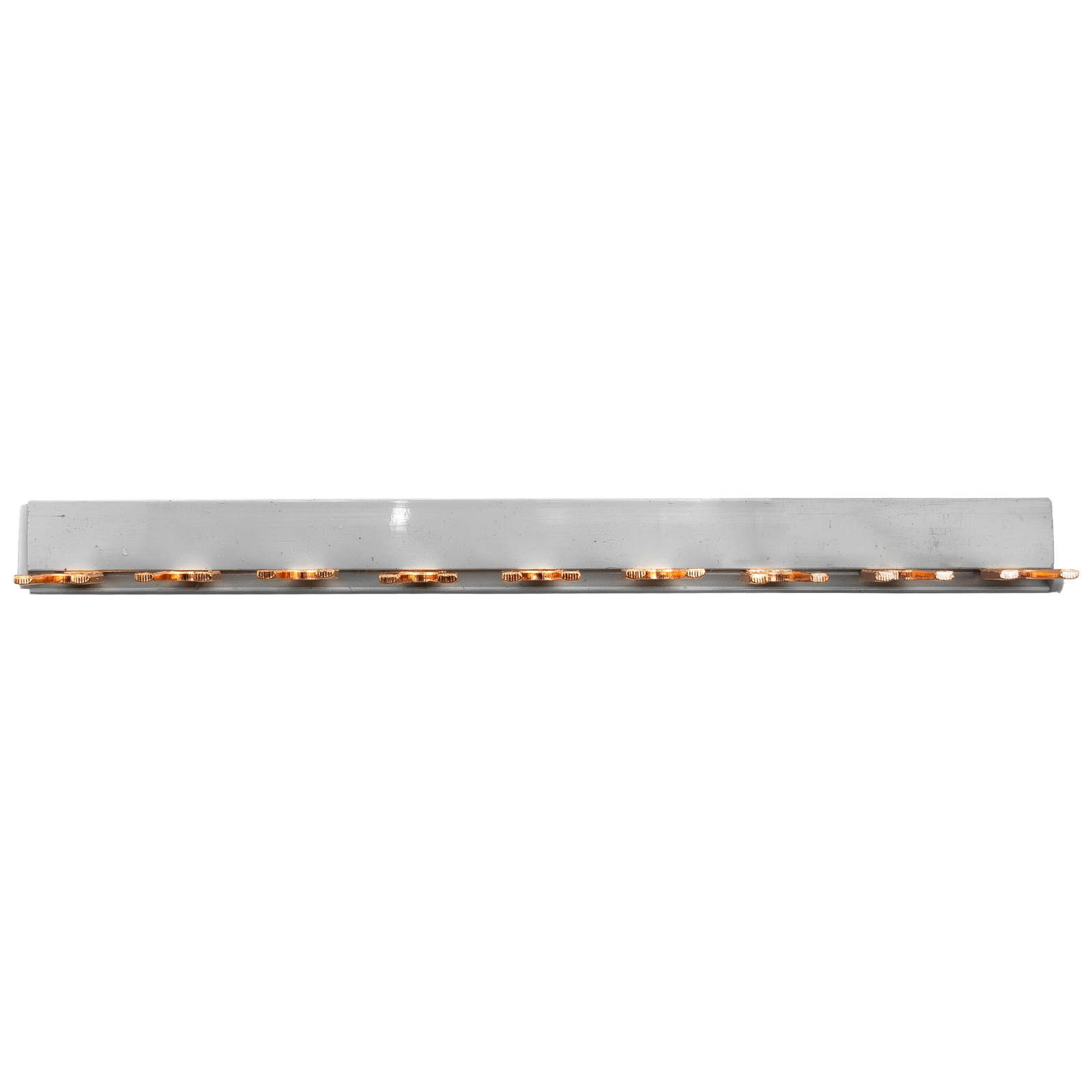 - Szyna fazowa 1P z końcówką widełkową to praktyczny element instalacji elektrycznych, służący do rozdziału zasilania na kilka aparatów modułowych. Model o długości 16,5 cm, 9 stykach i przekroju 12 mm², idealny do rozdzielnic 80A.