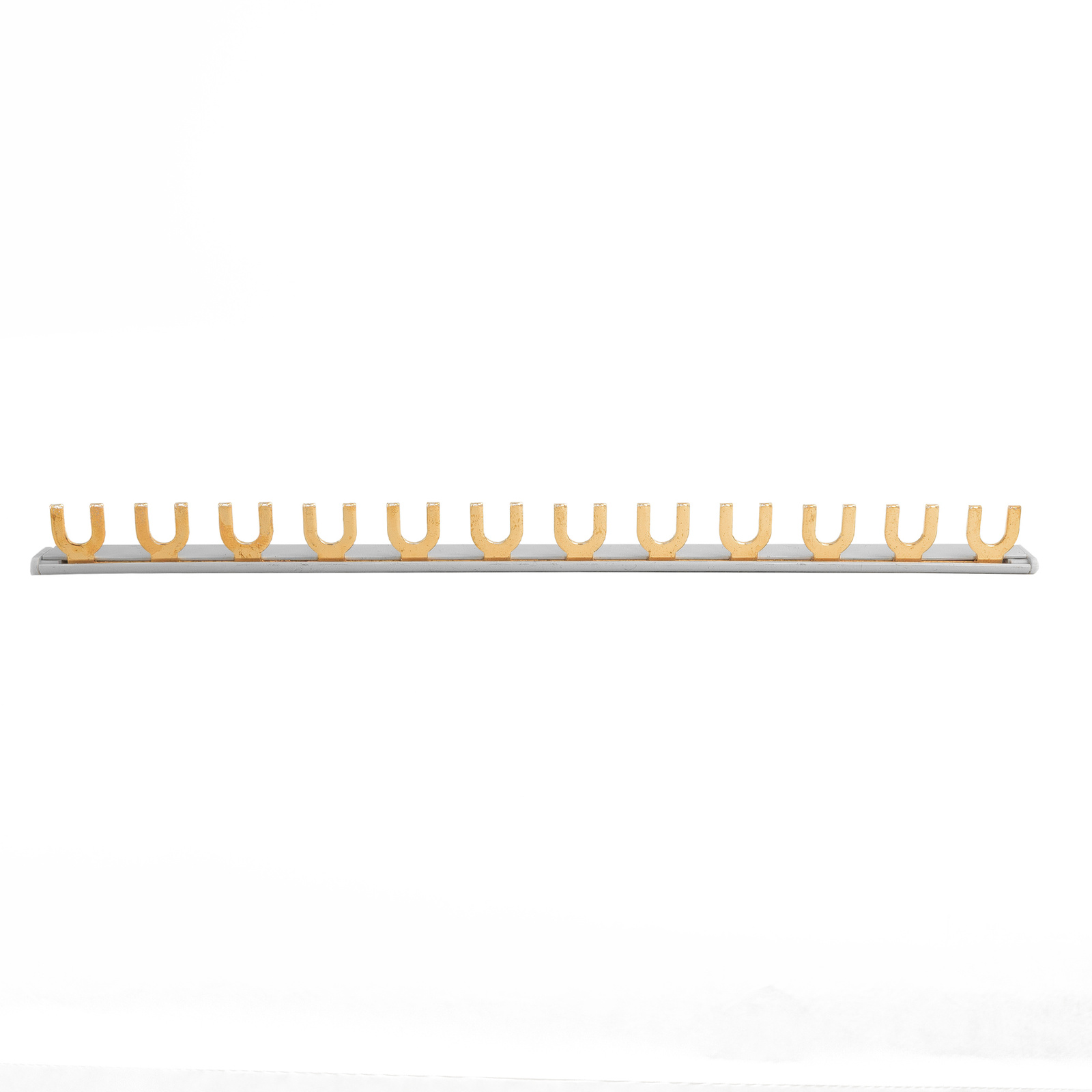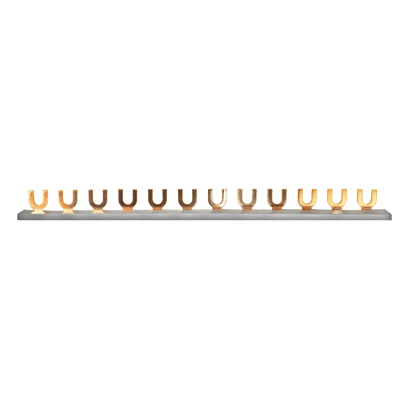 Szyna fazowa 1P z końcówką widełkową do rozdziału zasilania w rozdzielnicach modułowych. Model 12-polowy, o przekroju 10 mm² i prądzie znamionowym 63A, doskonale sprawdzi się w instalacjach domowych i przemysłowych.